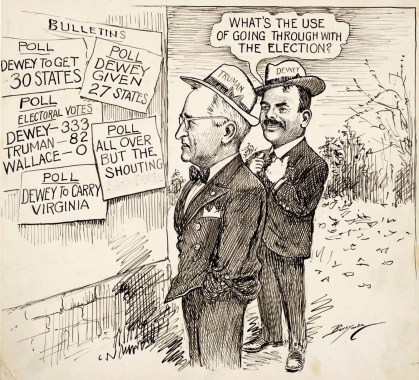 Views about candidates can and do shift as Election Day nears — even in races that seem to be near-blowouts in summertime. Consider, for example, the 1948 campaign, when President Harry S. Truman trailed Dewey by 11 percentage points in Gallup’s late-July survey. Elmo Roper’s polling in July 1948 showed Truman behind by nearly 15 percentage points.